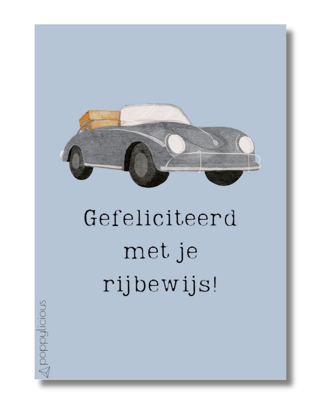 Leuke kaart om iemand te feliciteren met het behalen van zijn of haar rijbewijs. A6 formaat met achterop ruimte voor een persoonlijke boodschap en de adresgegevens